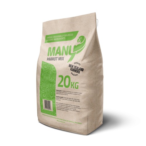Manu recommends using Manu’s cockatiel mix for smaller parakeets and parrots.